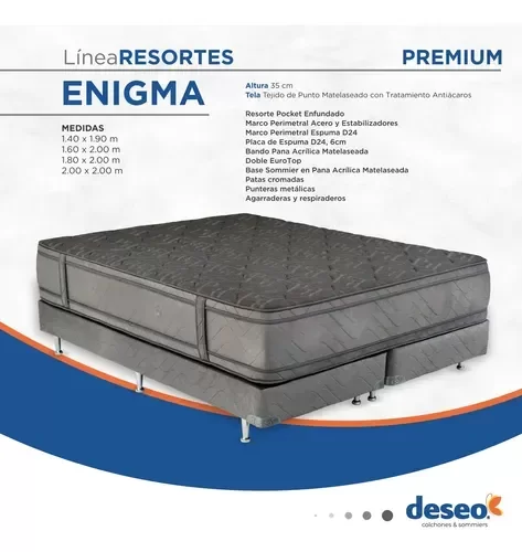 Colchón Deseo ENIGMA - Resortes Pocket 2 Plazas
