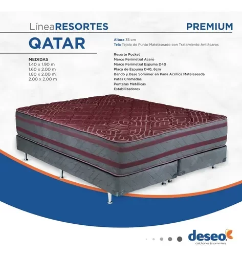 Colchón Deseo QATAR - Resorte Pocket 2 Plazas