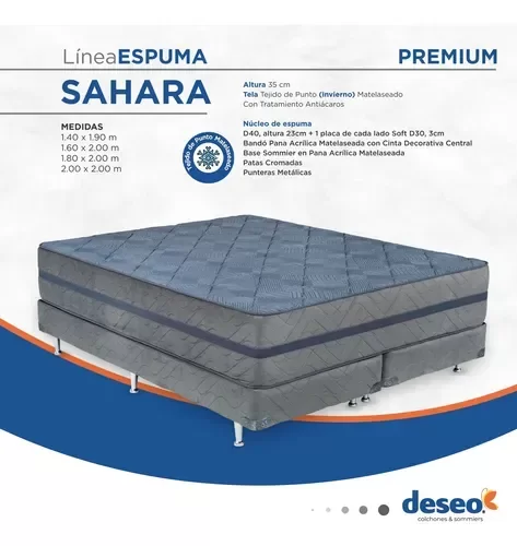 Sommier y Colchón Deseo SAHARA - Espuma King Size