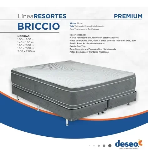 Sommier y Colchón - Resortes King Size 180x200x36