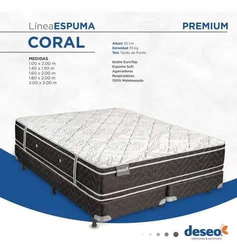 Sommier y Colchón Deseo CORAL - Espuma 2 Plazas y Media