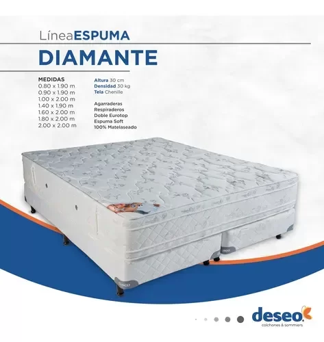 Sommier y Colchón Deseo DIAMANTE Euro Pillow - Espuma 2 Plazas y Media