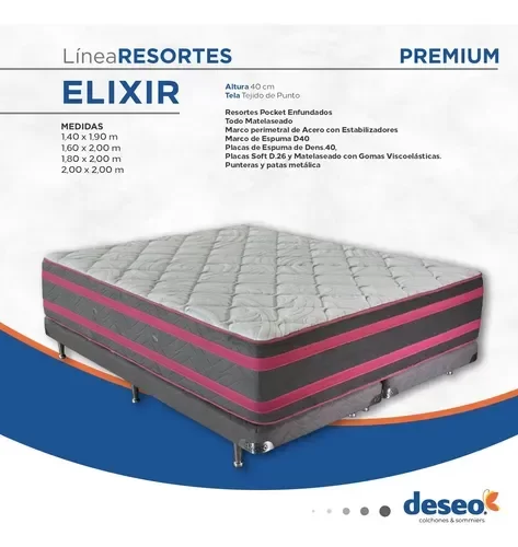 Sommier y Colchón Deseo ELIXIR - Resortes Pocket Super King Size