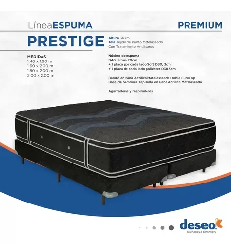 Sommier y Colchón Deseo PRESTIGE - Espuma Super King Size
