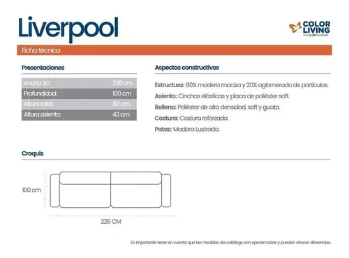 Sofá LIVERPOOL 3 Cuerpos Color Living